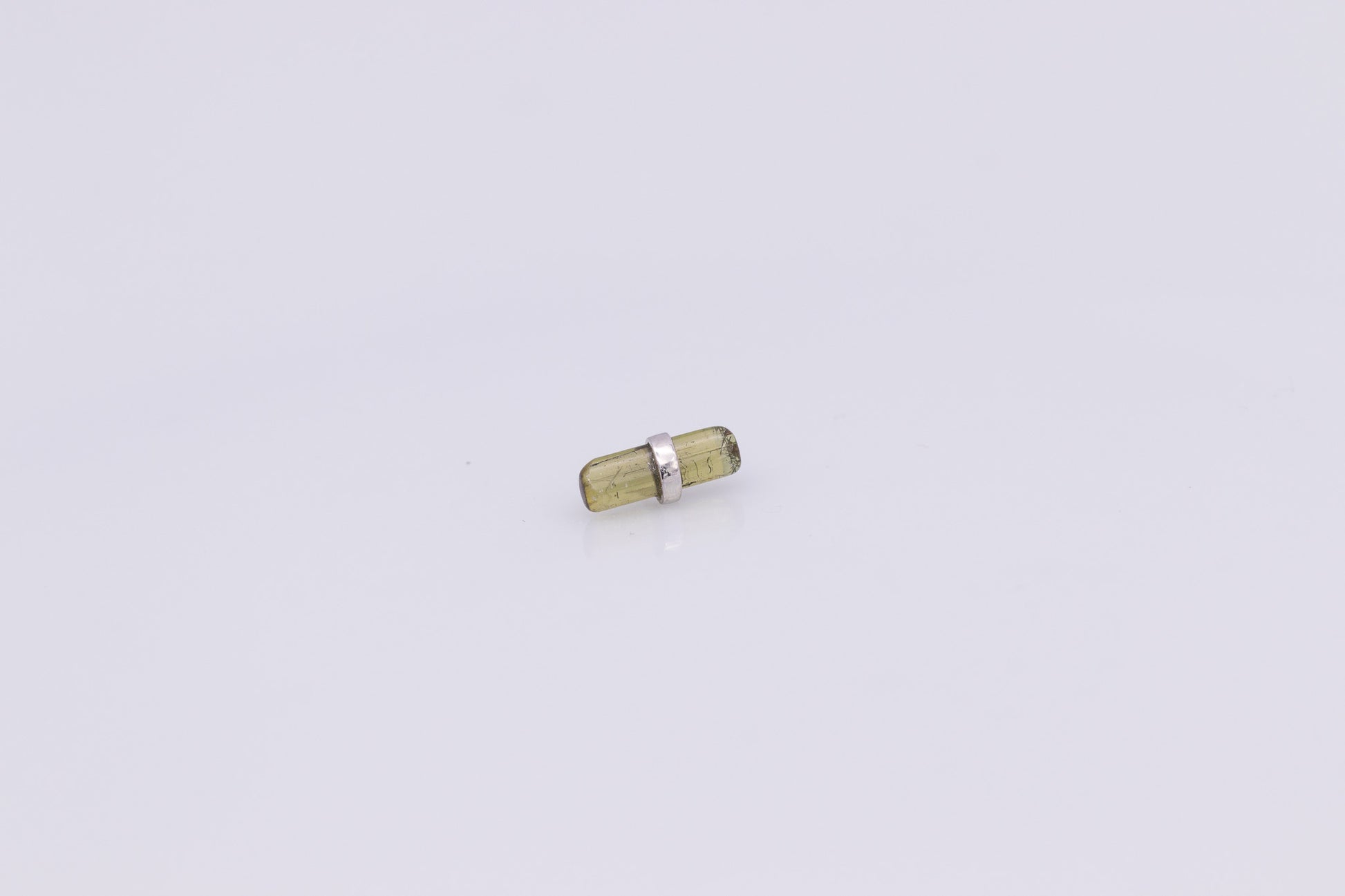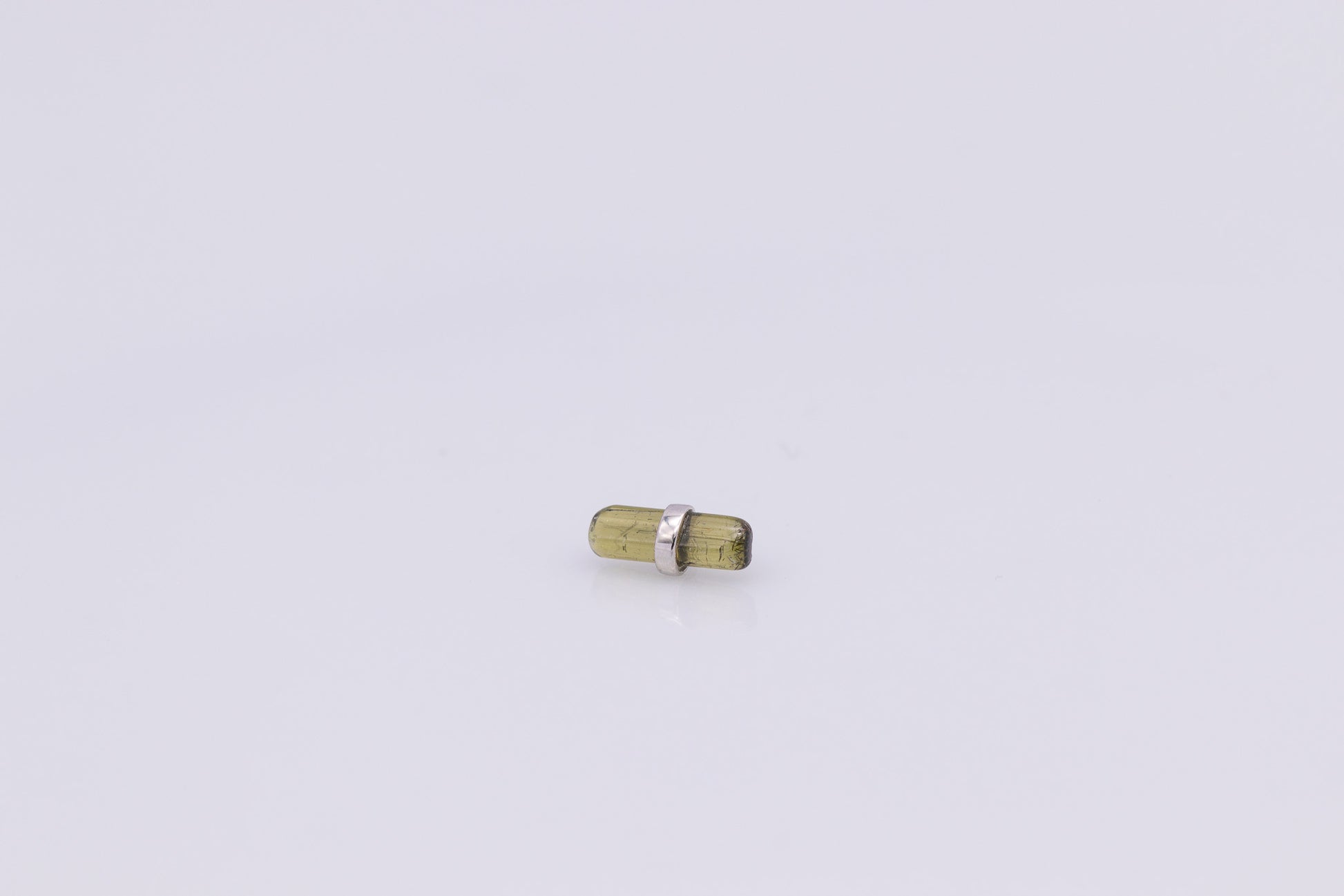 Der Turmalin besticht durch sein wunderschönes Olivgrün und hebt sich durch seine unbehandelte, organische Form deutlich von klassischem Piercingschmuck ab. Mit seiner Größe von 6,5 mm x 3 mm eignet sich Bound by Love perfekt für Conch- oder Helix-Piercings und setzt dort einen stilvollen, individuellen Akzent.