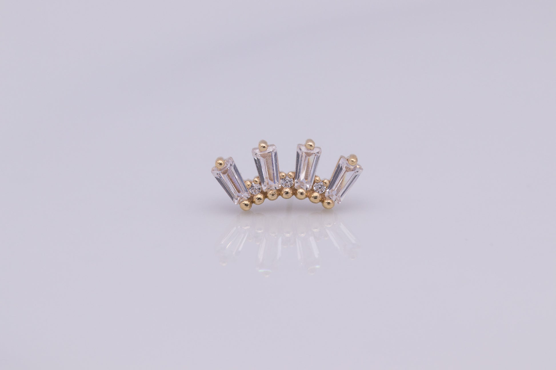 - Edelsteine: (4) 3,5 x 2 mm baguettegeschliffene und (3) 1 mm runde Zirkonia