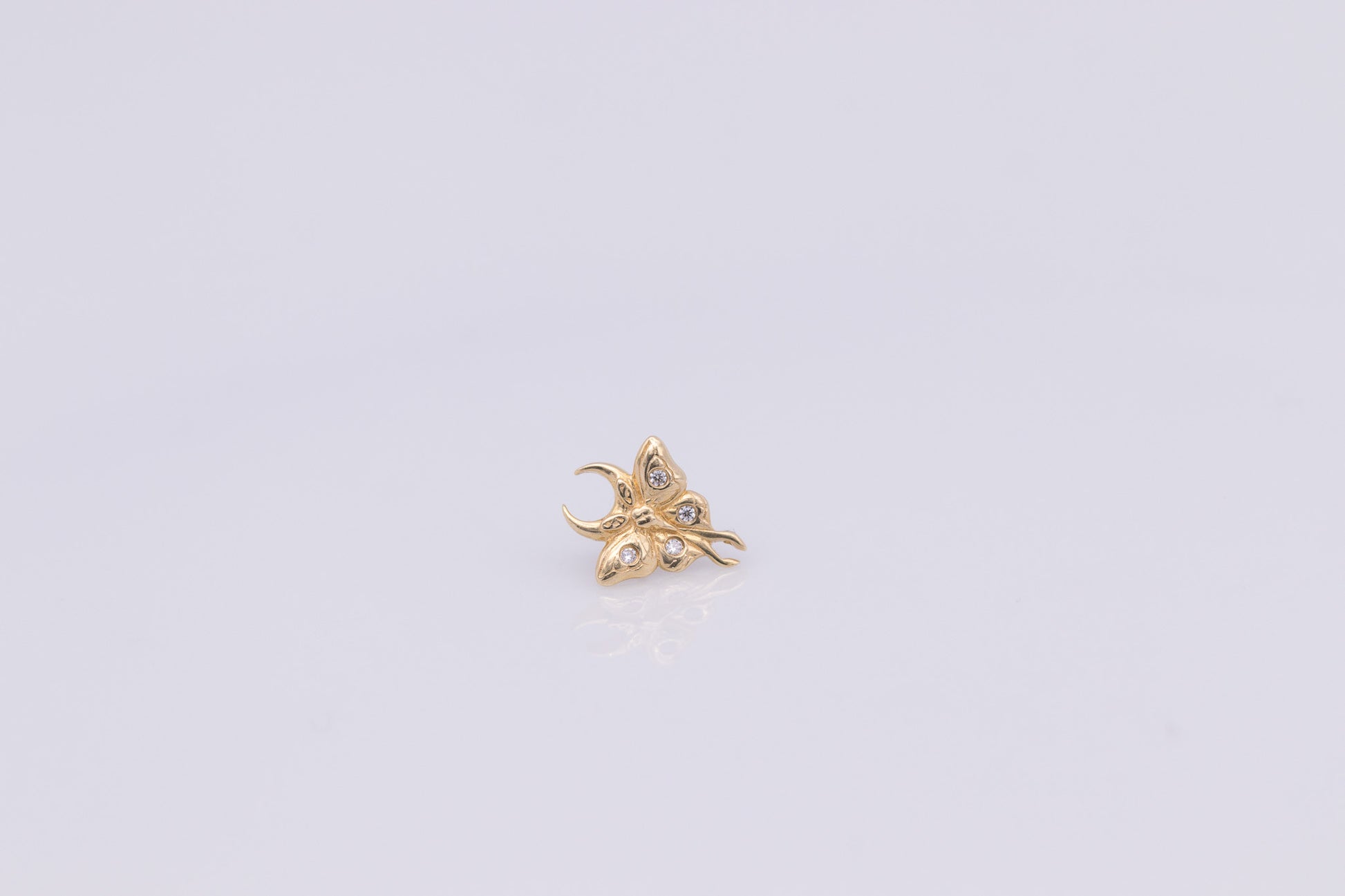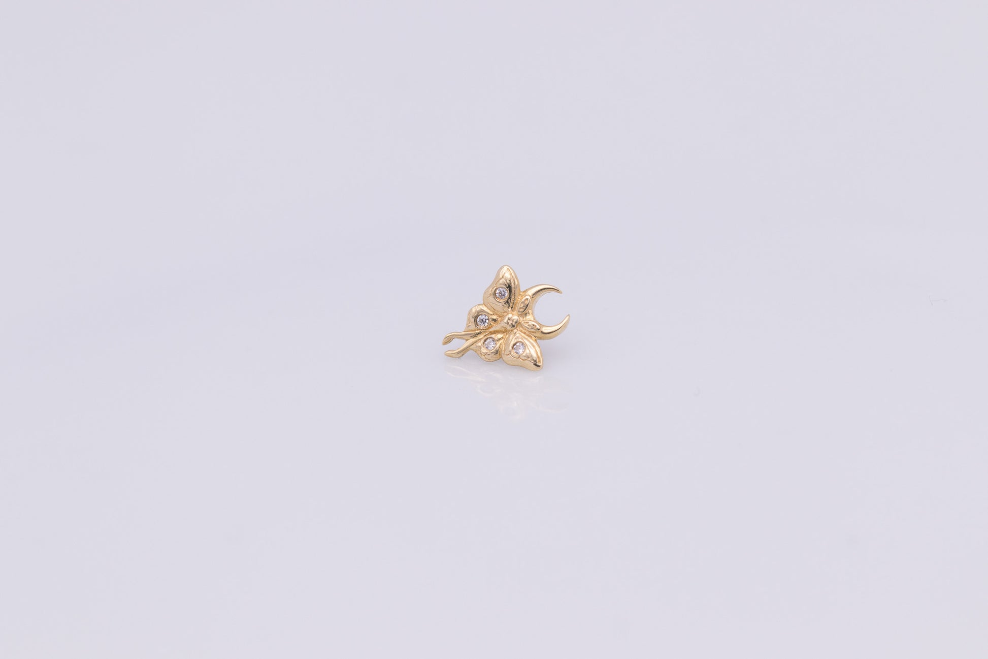 Der zarte Schmetterling mit funkelnden Akzenten und feiner Mondsichel steht für Wandel, Leichtigkeit und ein kleines Stück Magie. Gefertigt aus 14 Karat Gold und besetzt mit glitzernden Zirkoniasteinen, ist Luna ein Detail, das jedes Piercing sanft zum Strahlen bringt – ganz ohne aufdringlich zu sein.